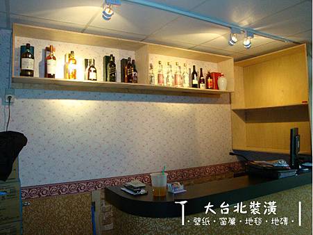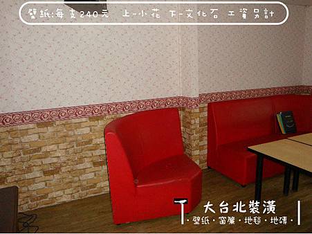 店面使用文化石磚牆壁紙和粉紅小花壁紙搭配藤紋腰帶