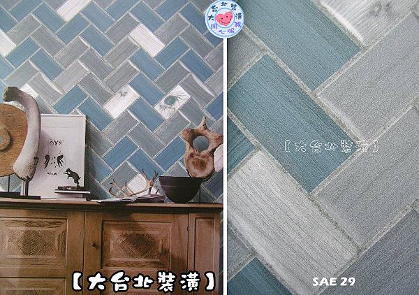 客廳 腰線板以下 日本壁紙 鄉村風直條藍色小花藤